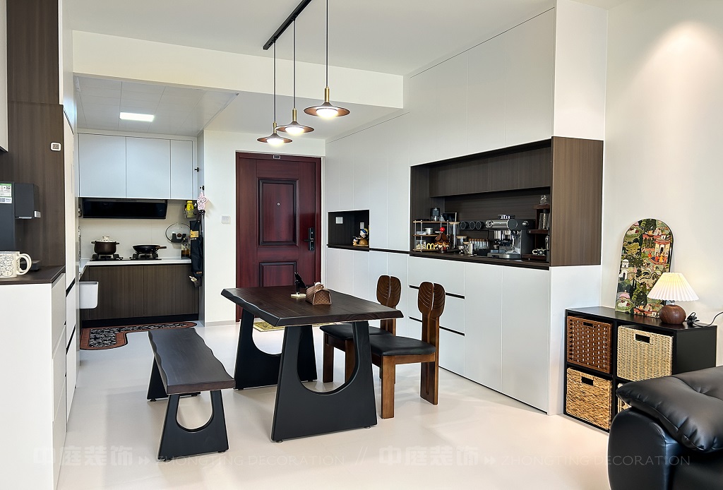 這套房從普通居所蛻變為都市療愈場,客餐廳以黑白棕營造高級松弛感,咖啡角、藝術畫、游戲區藏著主人對生活的熱愛,餐廚煙火與雅致共生,每處角落的陳設都是靈魂的妥帖安放,是裝滿故事與溫度的私屬堡壘。
