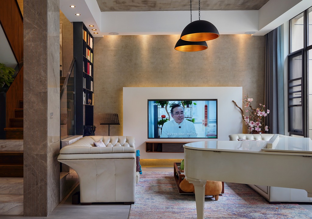 瀏覽量:75這套房子裝修風(fēng)格是工業(yè)風(fēng)與輕奢風(fēng)的巧妙融合,日常又不失格調(diào)。水泥質(zhì)感的吊頂保留了工業(yè)風(fēng)的粗獷感,搭配暖黃色的吊燈,瞬間讓空間溫馨起來。墻面采用質(zhì)感石材與簡約板材結(jié)合,電視背景墻的設(shè)計(jì)簡潔大氣。家具選擇了皮質(zhì)的輕奢款沙發(fā),觸感舒適且顯質(zhì)感。樓梯區(qū)域很有特色,木質(zhì)臺階搭配金屬扶手,旁邊的綠植和書架為空間增添了生機(jī)與文藝氣息。還有那架白色鋼琴,讓整個家在日常中多了一份藝術(shù)氛圍,無論是休閑還是待客,都能感受到這份融合了工業(yè)硬朗與輕奢精致的舒適日常。